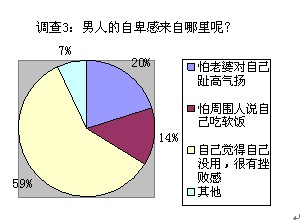在这里,我们要赞一个,这说明现在的男人们依然对家庭很有责任感,时刻铭记着男人养家的责任。不过,这种挫败感是否也说明男人的心态其实并没有放平呢?真爷们应该化挫折感为动力才行,而不是陷入自责之中,难以振作。男人自卑的第二大原因是因为害怕老婆会对自己趾高气扬。老婆真的像男人想象中那样介意男人的收入不如自己吗?还是男人的心理作用在作祟?在接下来的调查中我们会更接近真相。★对女人的建议: