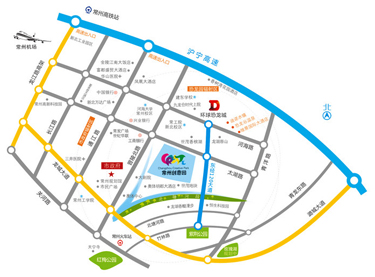 常州创意园地处常州主城区东北部,紧邻世贸香槟湖,距市行政中心1公里,公交系统可通达主要商业中心和社会服务设施,紧靠沪宁高速常州道口和青洋路道口,距京沪高速铁路常州站4公里,距常州市奔牛机场21公里。