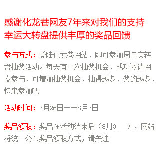 祝福化龙巷7岁生日快乐,希望化龙巷网站越办越好!