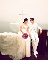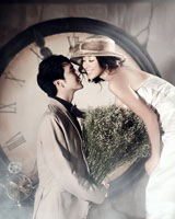 站立式婚照造型方便,夫妻之间自然贴切;动作容易做出,只要两人张口嘴巴笑笑就可以。且整体表现感觉端庄大方,夫妻双方倚靠而不亲昵,如蜻蜓点水,非常具有东方人的神韵。 |